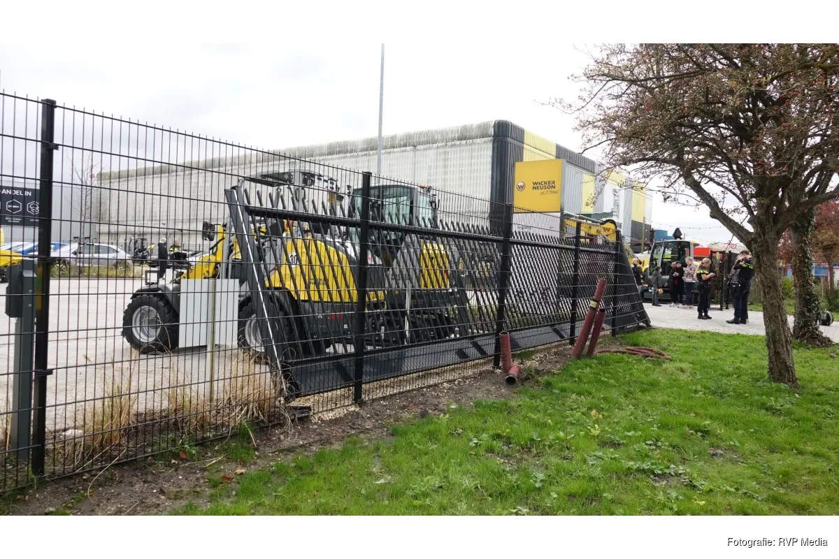 Door nog onbekende oorzaak botsten twee voertuigen op elkaar. Eén van de voertuigen kwam na de botsing tot stilstand tegen een hek van een bedrijf. Het hek raakte behoorlijk beschadigd.