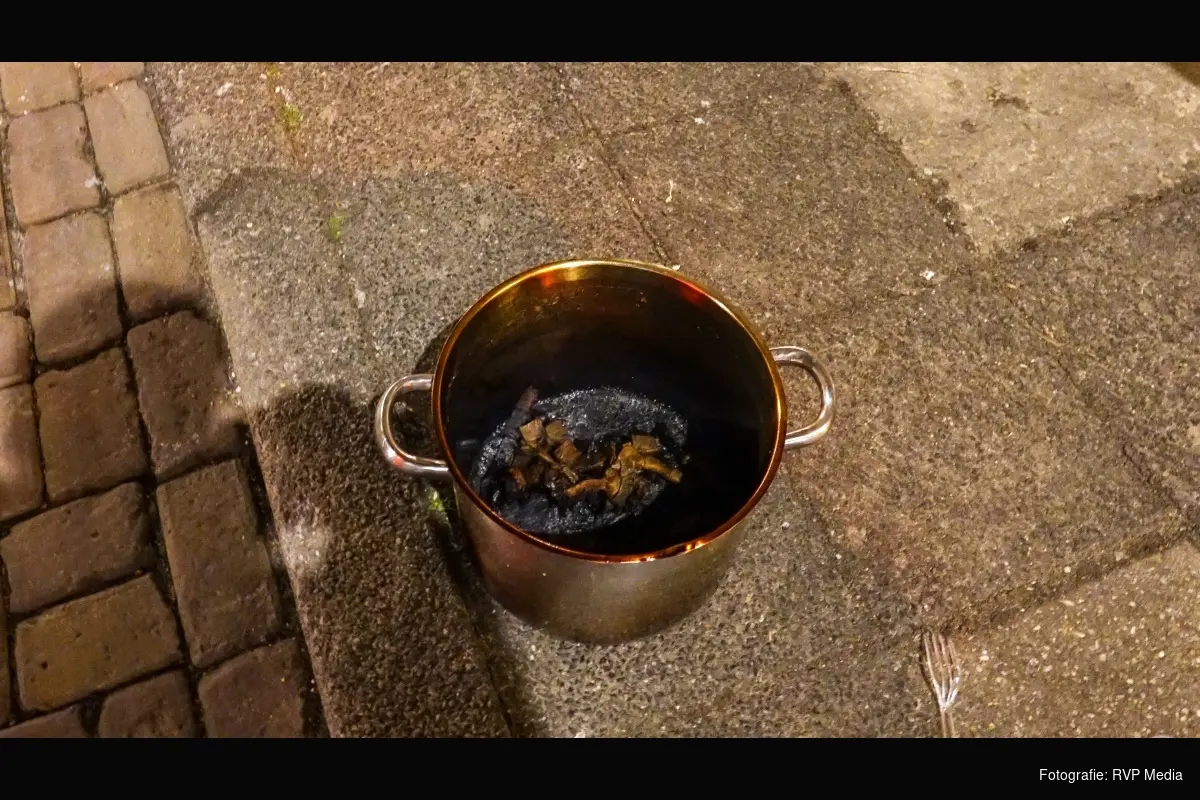 De brandweer heeft het pannetje naar buiten gebracht en de ruimte geventileerd. Niemand was aanwezig tijdens het uitbreken van de brand.