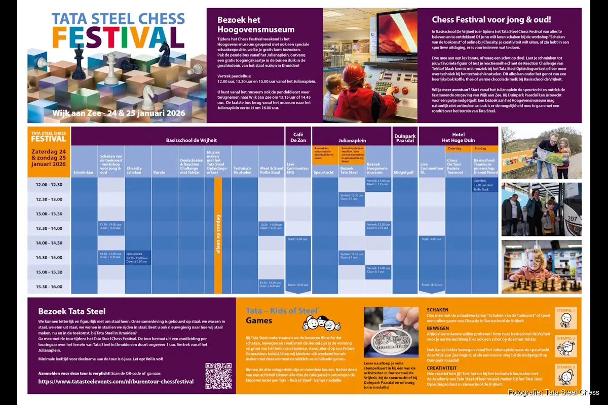 De 88e editie van het Tata Steel Chess Tournament vindt plaats in Wijk aan Zee van 16 januari tot en met 1 februari 2026. Alle speeldagen zijn na inschrijving gratis toegankelijk voor belangstellende: Aanmelden via Tata Steel Chess Tournament 2026 | Registratie, en we zijn ook online live te volgen.